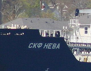 The Russian flag tanker SCF Neva arrived at inner anchorage. The ship will be moving to Imperial Oil at some point. As with all Russian flag ships, the name appears in Cyrillic characters on the bow. Usually there is a bridge board with the name in Arabic letters.