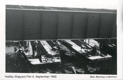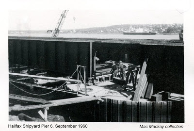 * In the background of the 1960 construction photos are ships of the former Canadian National Steamships.CNSS laid up its ships rather than bow to union strike demands. A deal to sell the ships to Cuba fell through when Fidel Castro took over and most of the ships languished in Halifax for years until sold for scrap. Also appearing in photo #6 is the coal burning icebreaker CGS Saurel tied up at the north end of pier 6.