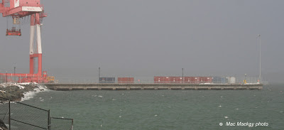 The new extension to Halterm's pier 42 has been closed to the public since last week's big snow storm. As the prime shipwatching spot in Halifax it was rarely if ever closed before this extension was built. There were times that the walkway was knee deep in snow, but it was always open any time I was willing to brave it.