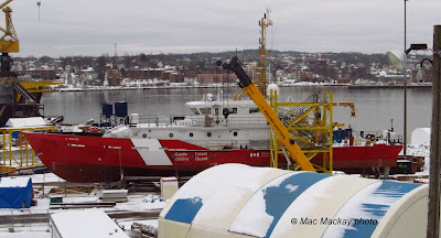 Halifax Shipyard is getting ready to launch the newest CCG Hero class patrol boat. Last week the shelter over the deck forward of the wheelhouse of A. LeBlanc was removed. A scheduled January 4, 2014 launch may still be in the cards. J.D. Irving moved their big prime mover Kenworth truck to Halifax just before Christmas, another sure sign of an imminent launch.
