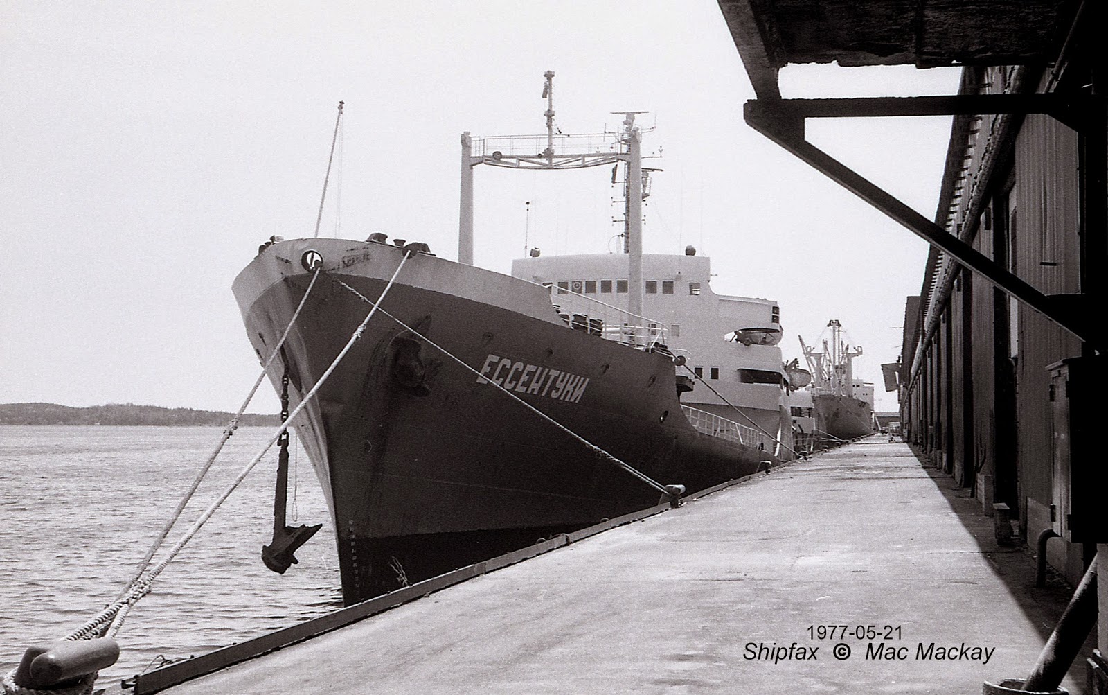 Seen here at pier 20 after loading water, the ship had several un-tanker-like characteristics, including deadlights in the forecastle, guard rails along the deck, a rather sleek hull shape and some extra communications equipment. Built in 1959 by the Admiralty Shipyard in Leningrad, it was reportedly broken up in 1991.