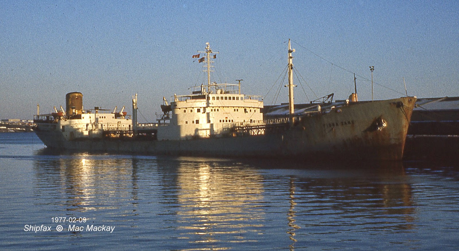 When Fiona Jane arrived in Halifax in early 1977 she was a sad looking sight. Once the pride of Ampol Petroleum Ltd of the UK, she was built as Leslie J. Thompson by Cockerill-Ougree in Hoboken, Belgium. When built in 1959 she was considered to be quite a large ship at 16,206 grt, 24,600 dwt.