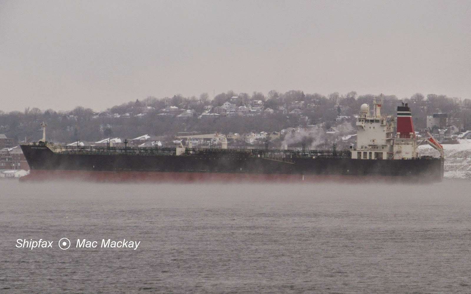 Before the sun penetrated through the sea smoke this morning there were freezing fog conditions in Halifax. Cold steel - particularly on ships - is an ideal surface for attracting frozen fog, but most ships that were visible seemed little effected. After yesterday's very busy day in the port, things are returning to relative calm again.